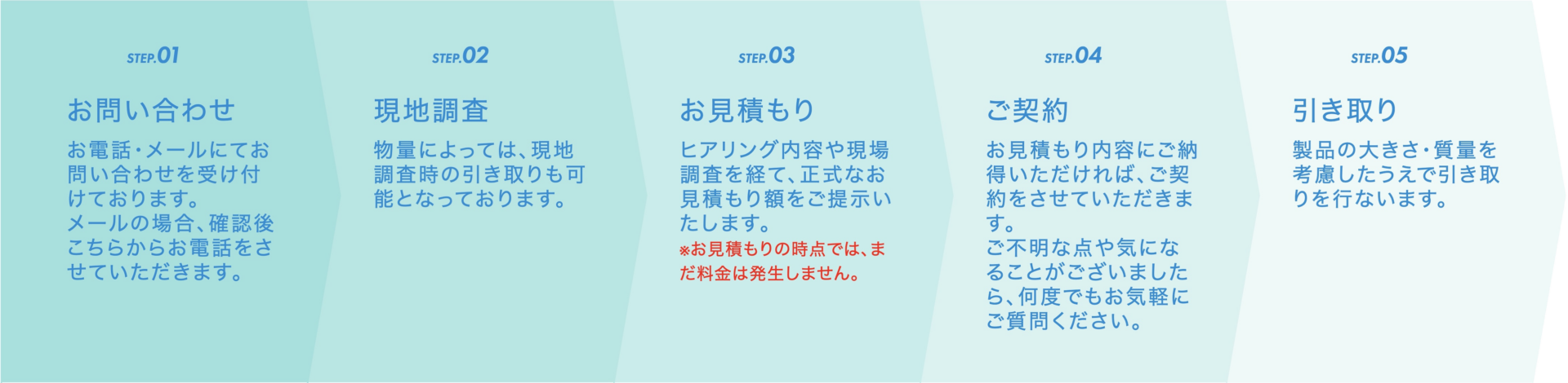 お問い合わせいただいてからの一連の流れ(引き取り)